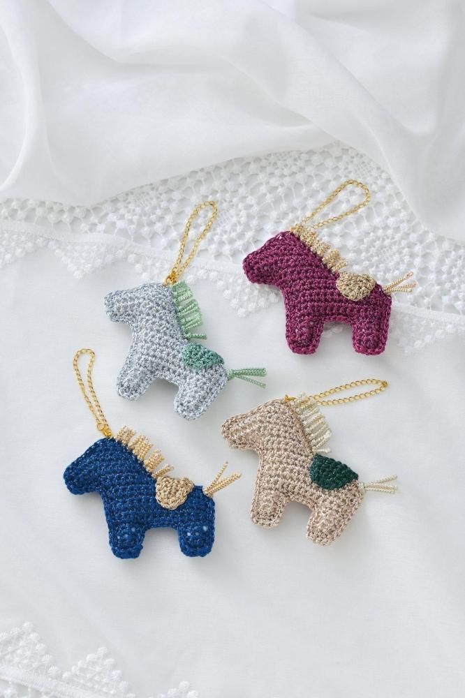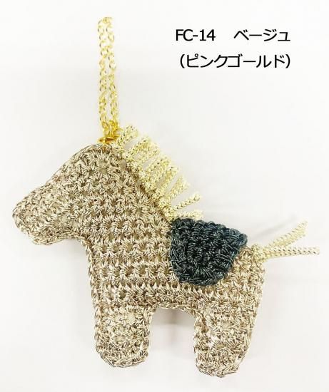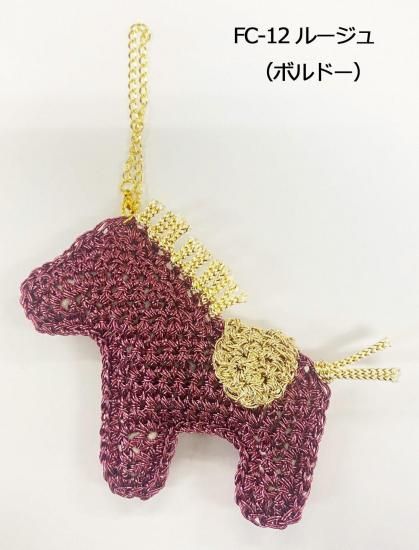 韓国と日本で人気上昇中!metallic free cord(メタリックフリーコード)!! で編むホースチャームキット 大人気メタリックフリーコードを使用したホースチャームキット 来年が馬年ということもあり干支 をモチーフににした商品にしました! 韓国と日本で人気急上昇中の毛糸を使用した編み物キットです。 硬質なワイヤー素材に見えますが、柔らかで編みやすいところが魅力的です!! メタリックフリーコードの良いところはバッグだけでなく、小物づくりにも適しているところ 光沢感がワンポイントアクセントになって、目立つこと間違いなしです 【キット内容】 メタリックフリーコード、メタリックヤーン、編み図、丸カン、カニカン、チェーン、綿 【用意するもの】 かぎ針5/0号、はさみ、ものさし、とじ針、ボンド、ペンチ 【あると便利】 段数マーカー、つまようじ、ピンセット、ニッパー サイズ:約長さ8.5cm×横10.5cm(チェーン約6cm) ホビータイム:約150分〜 入数:1ヶ *こちらの商品は、お届けに3日〜10日ほどお時間をいただく場合がございます。 在庫がある場合はすぐに発送できますが、在庫がない場合は取り寄せ後の発送になり、お届けに3日から10日かかる場合がございますので、お急ぎの方は在庫状況をお問い合わせください。 *モニターの発色の具合によって、実物と色等、異なる場合がありますのでご了承ください。